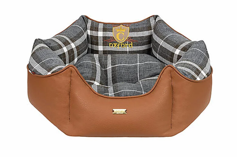 Lit exclusif de la marque Cazo pour chien et chat. Extérieur en simili-cuir de haute qualité combiné à un tissu exceptionnellement doux avec un motif à carreaux anglais.